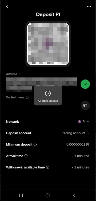 3. OKX에서 Pi 입금 주소 확인하는 법