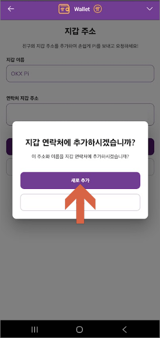 * 파이지갑에 OKX Pi 주소록에 추가하기