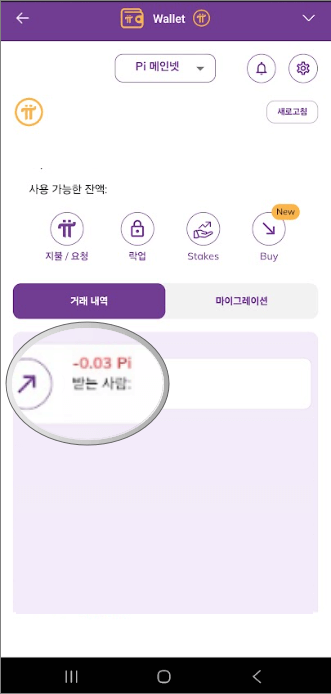 16. Pi Browser 앱 Wallet(지갑)에서 OKX로 보낸 수량을 확인하고 OKX에서 Pi 가 들어온 수량을 확인합니다.