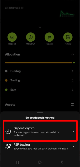 4. Deposit crypto 메뉴로 이동합니다.